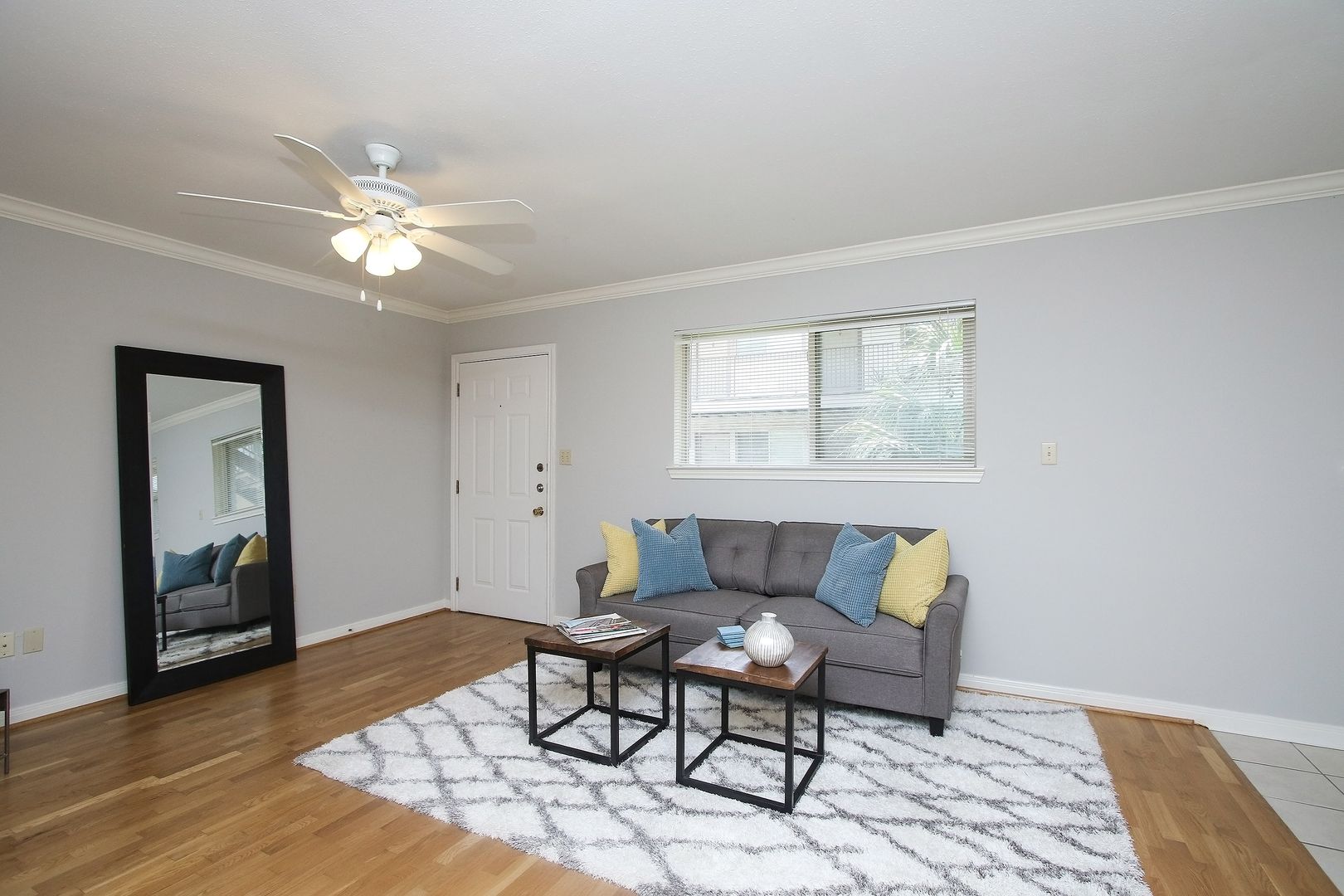 Central A/C and off-street assigned parking included. Photos are of staged model unit, final finishes may vary.
